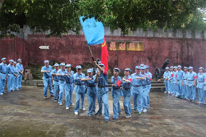 “七一”前夕,城投集團全體黨員身穿紅軍裝,頭戴紅軍帽,腰系紅軍帶,分乘兩部大巴,雄赳赳氣昂昂前往鷹揚關。