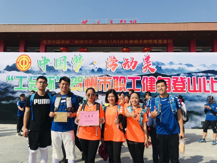11月6日,賀州市總工會第三屆“工會杯”職工登山健身比賽在賀州市昭平東潭嶺舉行,來自全市各市直單位100支代表隊共計600人參加活動。市城投集團選派出葉汶朋、李承偉、趙樹燁、莊曉華、義潔、韋俊安等6名隊員代表集團參賽。