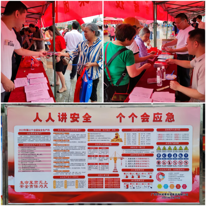活動現場,城投干部職工通過制作宣傳展板、現場講解、發放宣傳資料等方式,重點對《安全生產法》、有限空間作業、防汛防溺水、安全用火用電用氣等安全應急知識進行了廣泛宣傳。活動共發放宣傳單500余份、宣傳袋等物品100多個。
